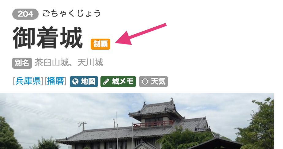 攻城団ではいわゆるマイナーなお城については希望する人だけに表示しています。こうしたお城は該当のお城ページに「制覇」と表示されます。