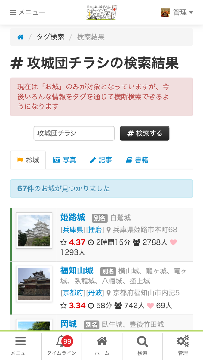 しばらくテスト的に運用してみて、問題なさそうであれば写真や城メモなど、ほかのコンテンツにもタグ付けできるようにします。